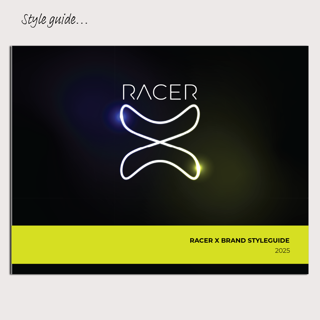 To ensure the logo was ready for professional deployment, I delivered it as a fully scalable vector file, which is essential for maintaining quality and clarity across all outputs, from large signage to small mobile interfaces. This project also included a comprehensive style guide where I employed consistent typographical hierarchy for the text-heavy document, to optimize readability by the organization’s employees. The primary round of iteration focused on adjusting the line weight of the "infinity X" and the “Racer” text, and softening the intensity of the neon glow. This careful refinement was important for confirming the logo's legibility when minimized (such as for a favicon or app icon), successfully transforming the initial concept into a versatile and commercially ready logo.